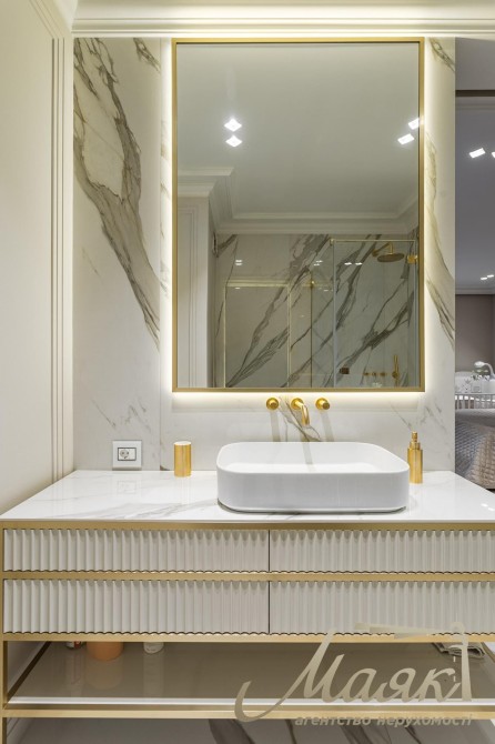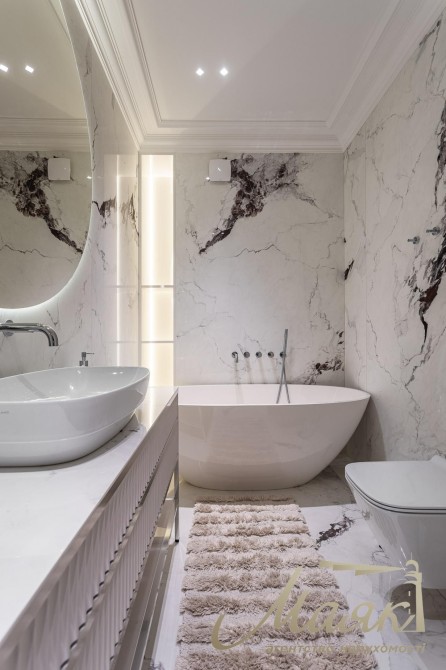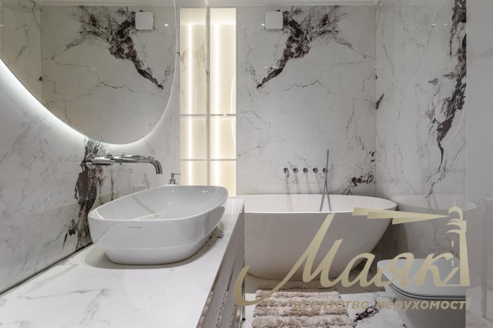 Площадь — 121,5 м². Квартира абсолютно новая, выполнена по авторскому дизайн-проекту с использованием только премиальных материалов.