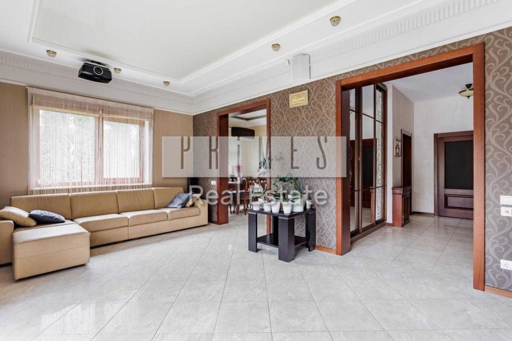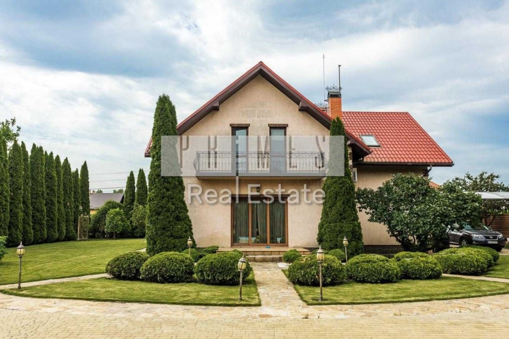 Загальна площа будинку - 205 м², розташований на доглянутій ділянці 12 соток з ландшафтним дизайном та зеленими насадженнями.