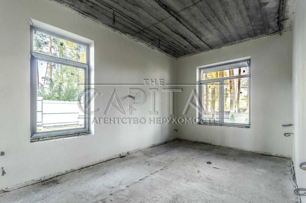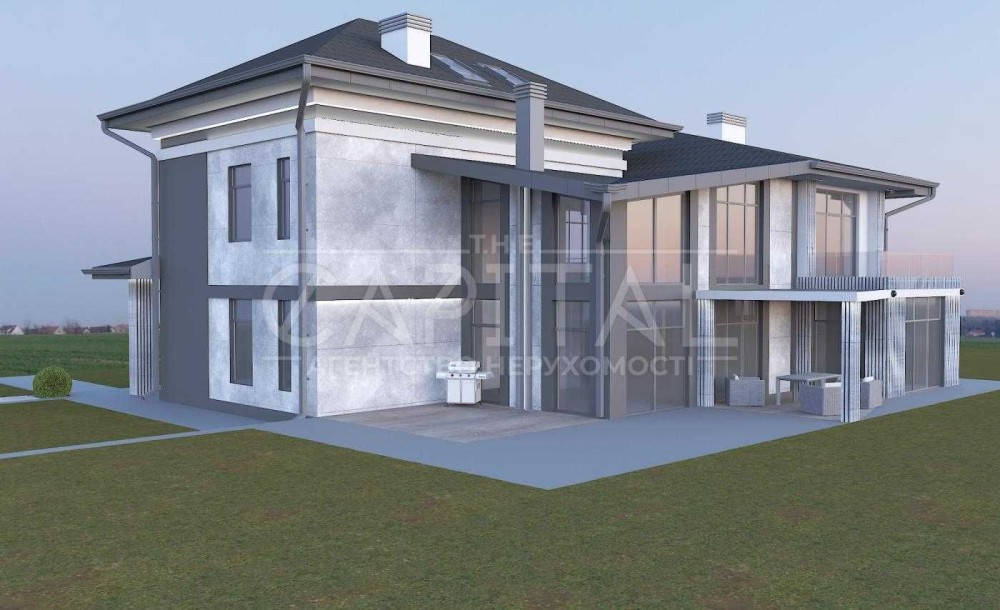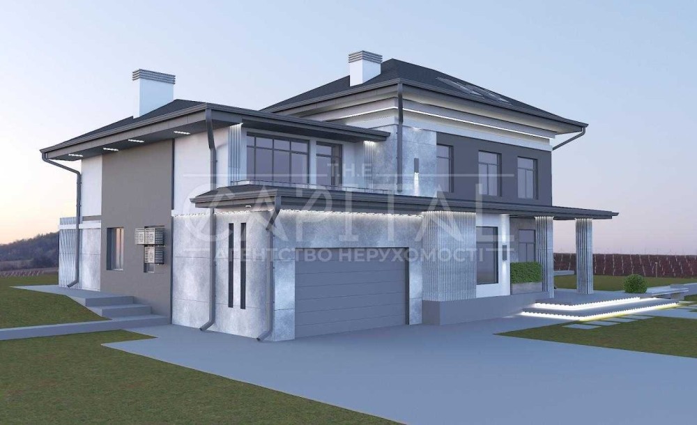 На продаж пропонується сучасний будинок з панорамними вікнами та другим світлом , високими стелями та просторовими, світлими кімнатами. Будинок знаходиться на закритій території КМ "Зелений Маєток" в оточенні лісового масиву який вдало відокремлює його від магістралі, поруч знаходиться 2 озера з пляжем, зоною барбекю, рибальством. На території зведені 23 домоволодінь(планується 40) , а безпеку мешканців забезпечує служба охорони з цілодобовим пропускним режимом. Торгові комплекси та центри дозвілля та розваг розташовані за 10 хвилин їзди.Відстань до Києва 10 км. Три зручних заїзда в Київ .