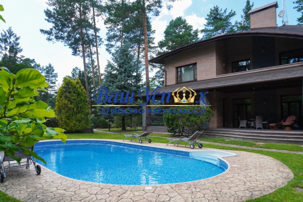Будинок, 2 поверхи, 5 кімнат. Під'їзд до будинку - асфальт. Площа ділянки 50 соток. Планування кімнат Роздільне. У будинку 4 роздільних санвузла, туалет/ванна/душ. Сантехніка нова. Вхідні двері броньовані. В будинку 2 балкони. Тип кухні - кухня-їдальня. Є дах. Є огорожа. У будинку є Телевізор, Кабельне ТБ, Супутникове ТБ, Шафа, Ліжко, Підігрів підлоги, Камін, Кондиціонер, Пральна машина, Душова кабіна, Джакузі, Холодильник, Мікрохвильовка, Посудомийна машина, Сигналізація, Сейф. Своя каналізація. На території ділянки є гараж, прибудова, басейн, баня, сауна. Загальний стан будинку - З ремонтом. Охорона, автопарковка. Поруч є школа, дитсадок, зупинки, розважальні заклади, супермаркет, парк, річка / озеро, ліс. Прямий продаж, Ексклюзивний договір. Сантехніка нова. Працює без світла - вода, газ, опалення, інтернет, резервне живлення (акумулятори/генератор).