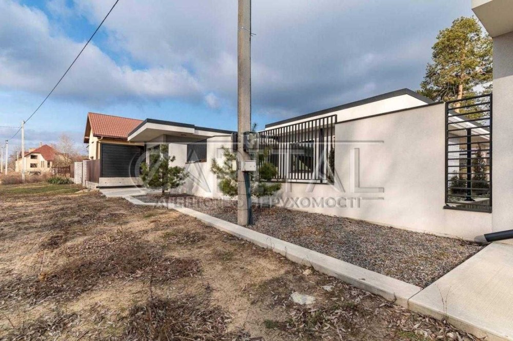 Цей сучасний одноповерховий будинок у селі Вишеньки, Київська область, поблизу Осокорки, є унікальною можливістю для придбання житла високого рівня енергоефективності та комфорту.