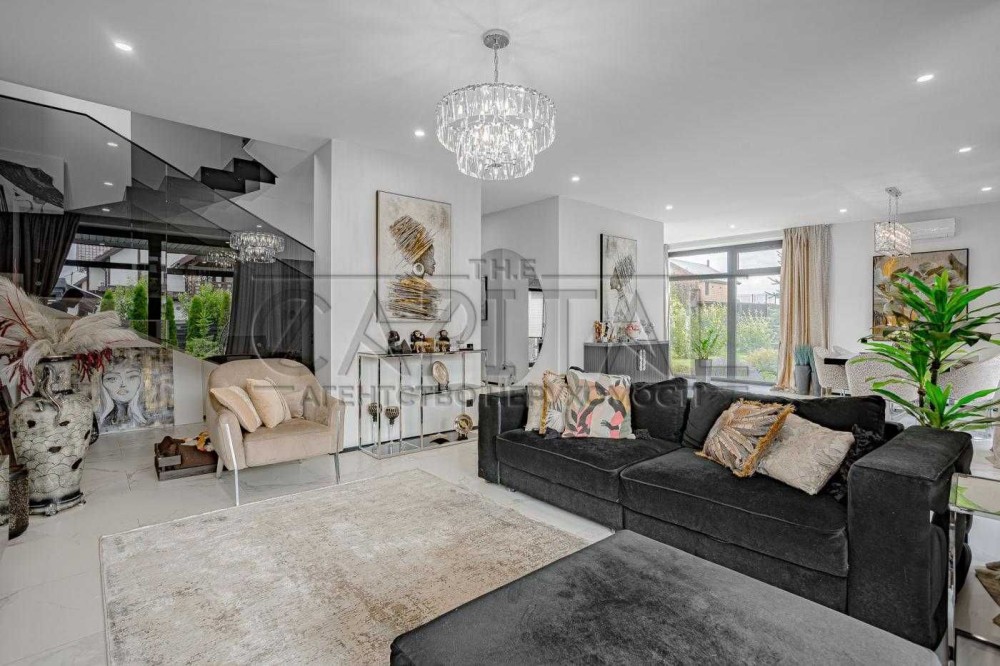Загальна площа будинку становить 165 м2, площа ділянки - 9 соток. Він вирізняється гарним дизайнерським ремонтом і просторими терасами, басейном та багатим ландшафтом.