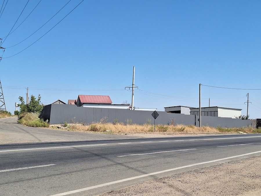 По периметру объект огражден забором, с въездом через оборудованные большие ворота, удобные для большегрузных машин.