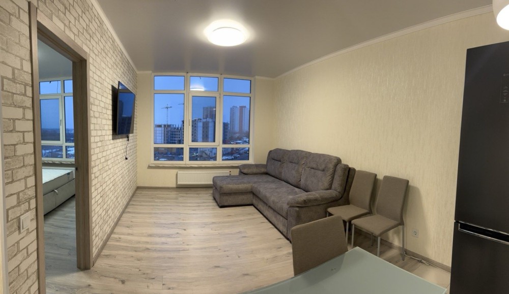 5 этаж 8 этажного дома, 45 метров, комната 15 метров, кухня гостиная 18 метров, евродвушка. Квартира после нового ремонта, панорамные окна, теплая, светлая, современная, уютная квартира. Продается с мебелью и бытовой техникой, рядом с квартирой кладовая, можно использовать как подсобное помещение . В доме есть подземный паркинг, на первом этаже большой супермаркет "ТРАШ", отделение новой почты, дом под круглосуточной охраной, закрытая территория ,вход и заезд на машине на территорию только для жителей дома, есть свой дворик с ландшафтным дизайном и зоной отдыха