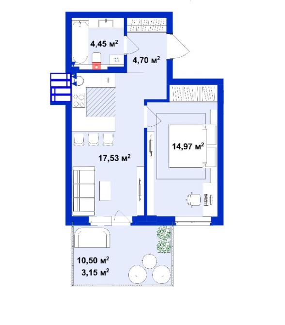 • Загальна площа 43 м2