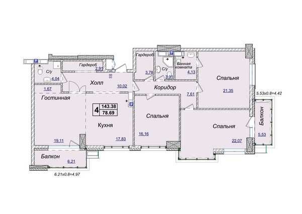 Загальна площа – 143.38 кв.м.