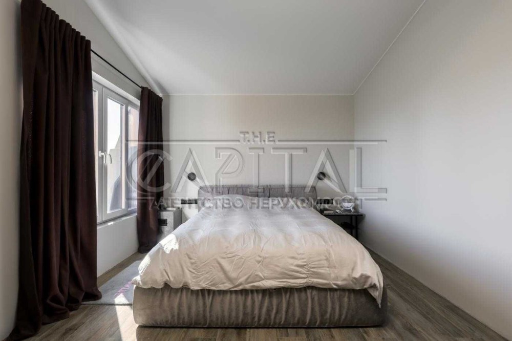 У спальні на другому поверсі — широка двоспальне ліжко з преміальним ортопедичним матрацом