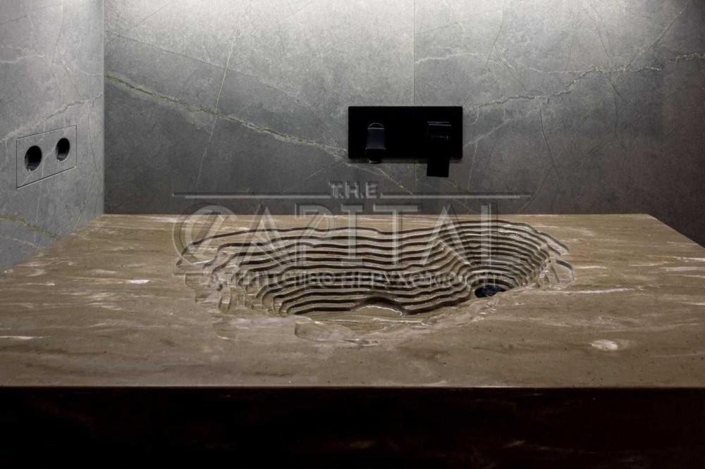 Сховані витяжки, кнопки інсталяцій, розетки та перемикачі на LED-підсвітку і витяжку — зроблені з керамограніту
