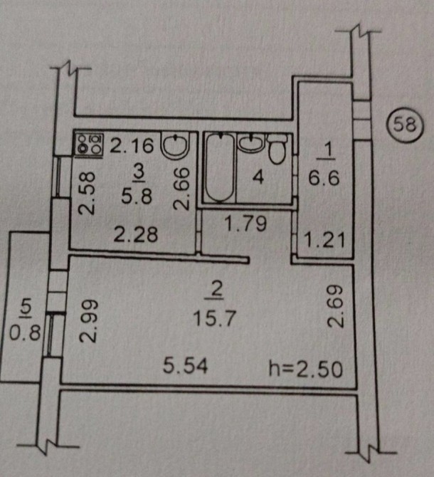 • Площа кухні 6 м2