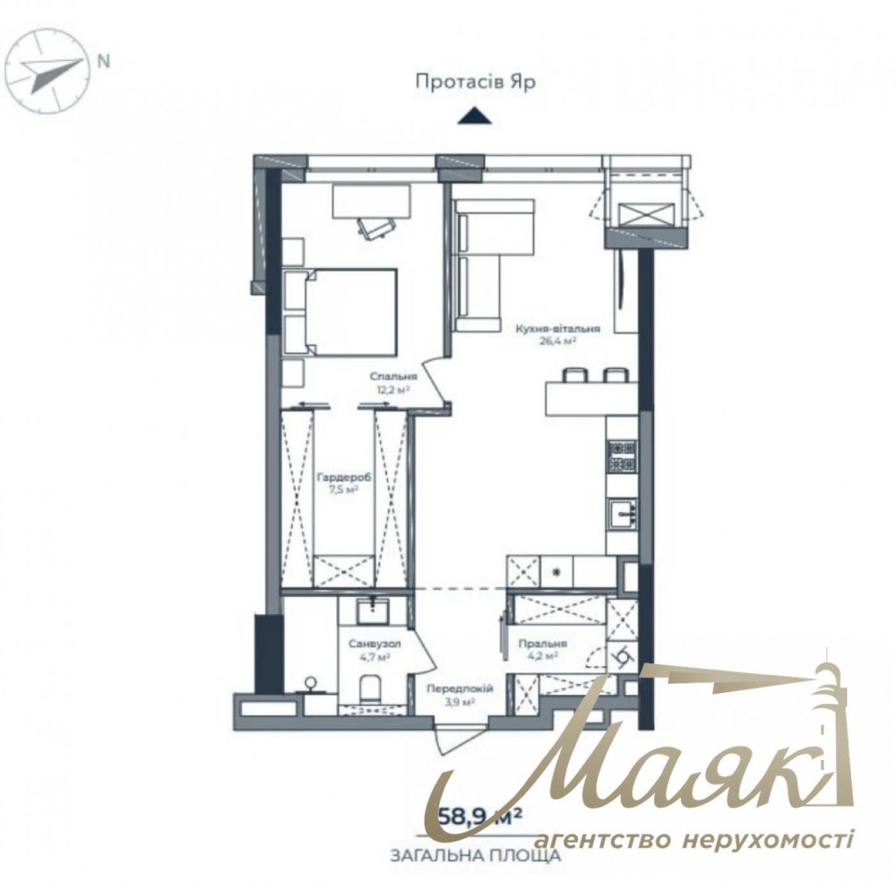 • Загальна площа 59 м2