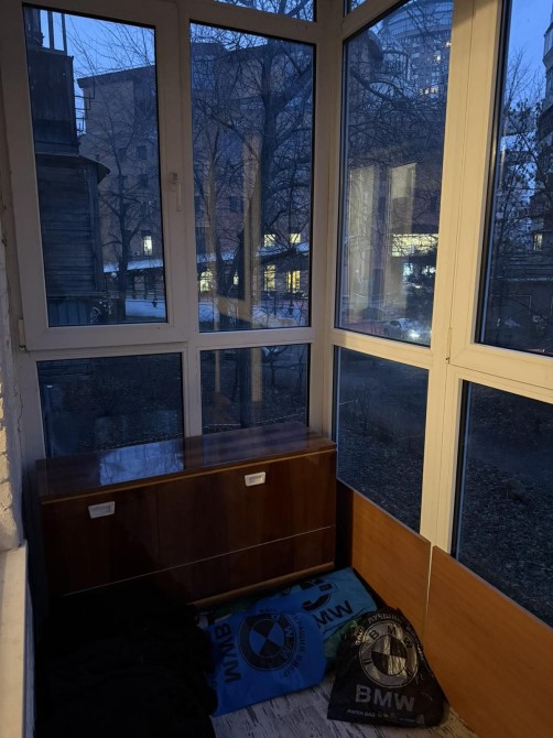 Новий балкон з гарним видом у двір на дерева.