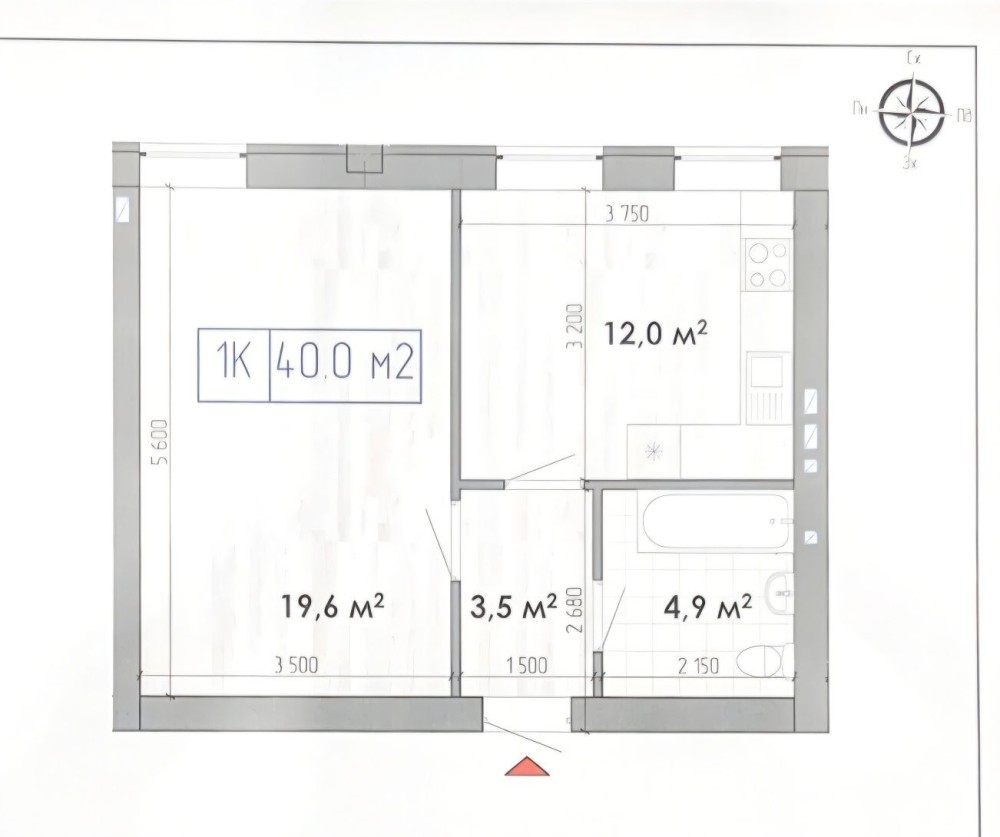 • Загальна площа 40 м2