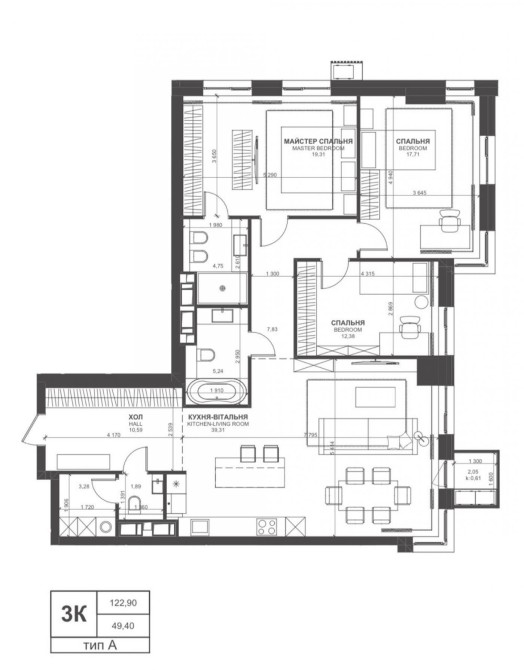 - кухня-вітальня 50м2.
