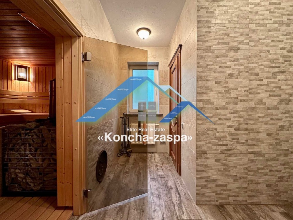 Дом 423м2 построен из красного кирпича с керамической черепицей на участке 12 соток , так же на участке построенная отдельно стоящая баня на дровах с террасой и зоной BBQ