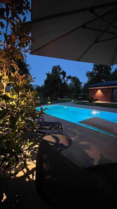 • Бассейн Compass Pools 9,5 × 4 м (роллета, самоочистка дна, солевая система, противоток, подсветка, подогрев джакузи)