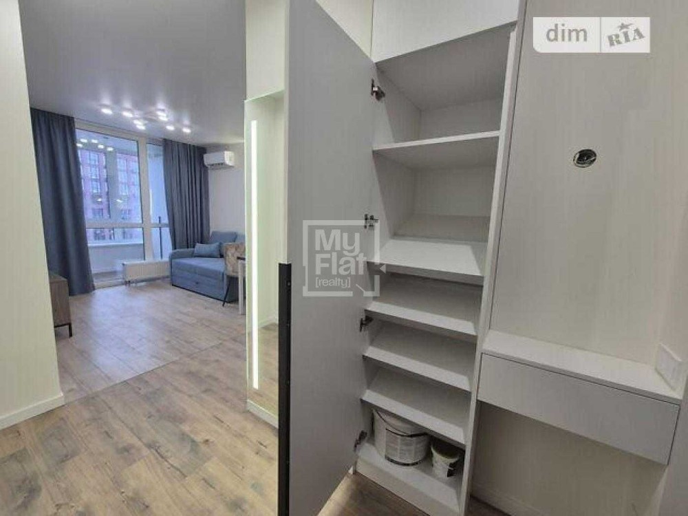 Продається однокімнатна квартира з сучасним дизайном, великими вікнами та світлими стінами у сучасному ЖК Діброва Парк