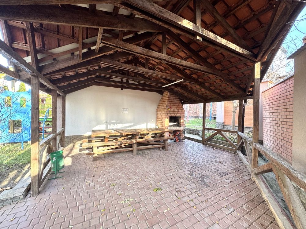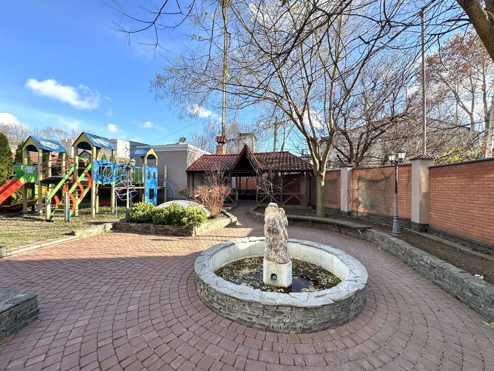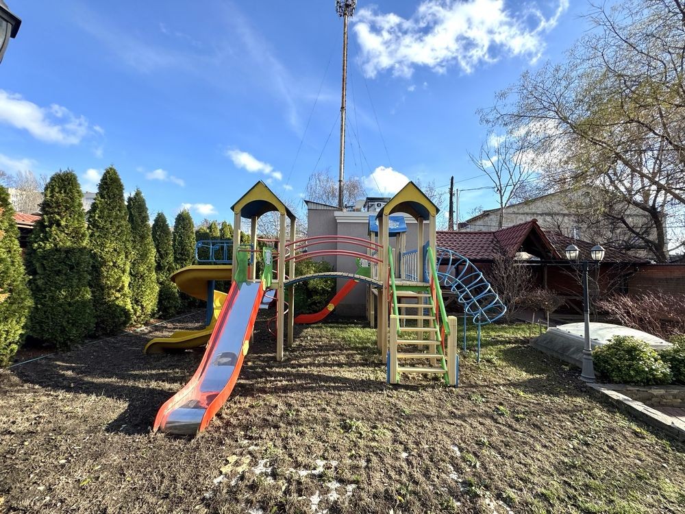 Дом расположен на закрытой охраняемой территории. Во дворе — современная детская площадка и оборудованная зона барбекю.