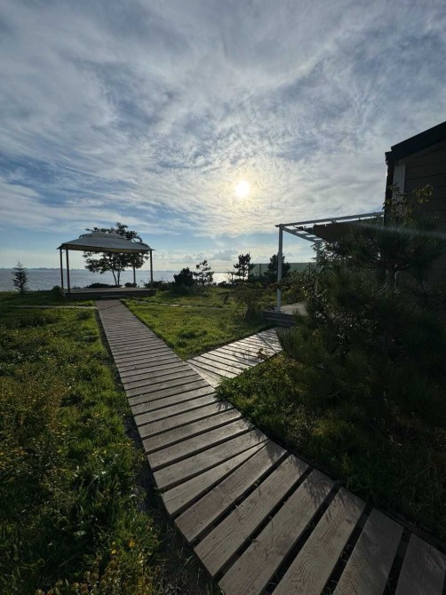 С участка открывается потрясающий вид на город, залив, а также на морскую часть горизонта. Рядом с участком находятся три пляжа, а также яхт клуб и обустроенная набережная.