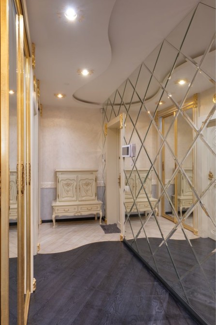 Є окрема спальня з обшитим шкірою балконом, гостьова кімната з виходом на кухню, велика 10 кв.м ванна кімната з джакузі та окремим душем, шикарна облаштована гардеробна , просторий в дзеркалах коридор.
