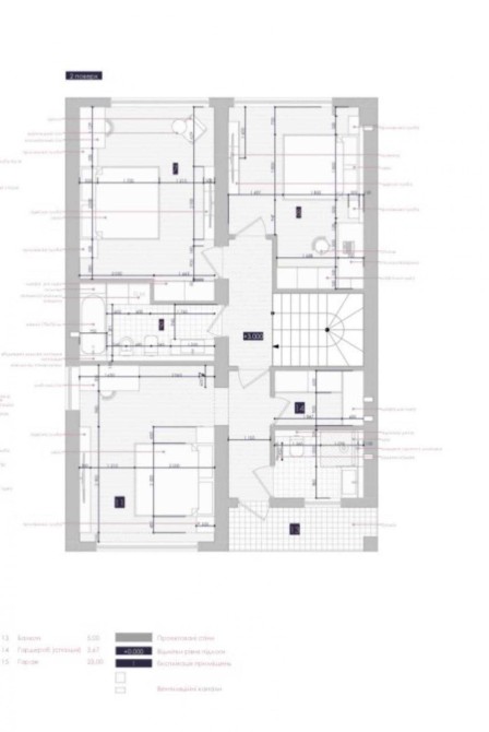 Другий поверх: три житлові кімнати, два санвузли, гардероб