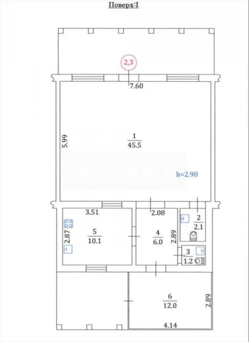 • Висота до стелі 2.9 метра