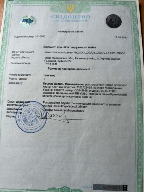 Івано-Франківська обл., Тисменицький р-н, с. Угринів, вул. Галицька, 2А.