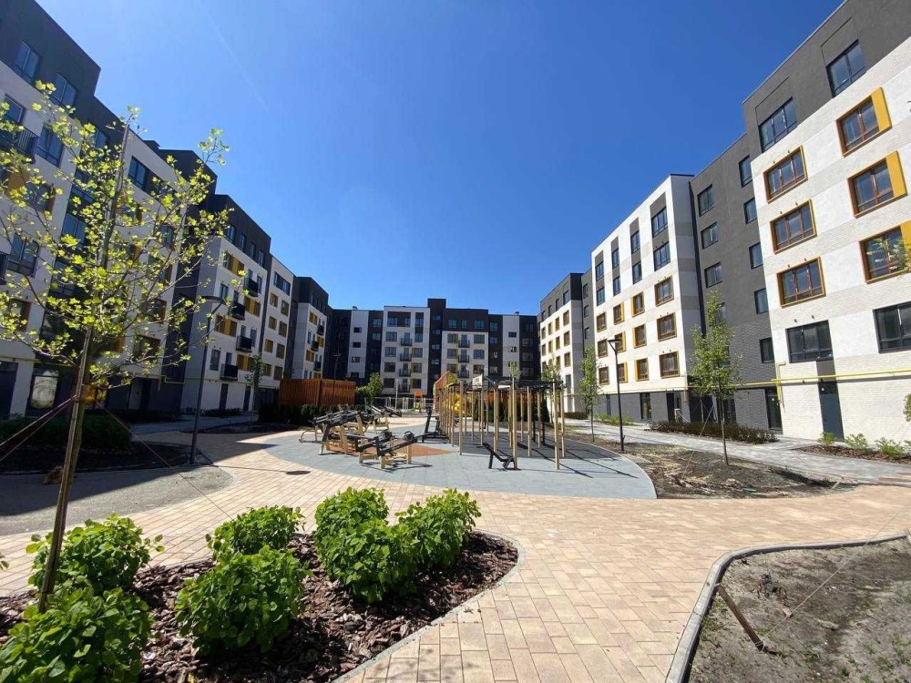 на комплексі є все необхідне: магазини, супермаркети, зупинка маршрутки