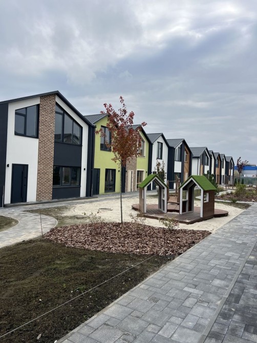 2км від ТРЦ Термінал. Великий сучасний житловий комплекс на більш ніж 350 будиночків. На території комплексу є все необхідне, дитячі майданчики, спортивні майданчики, комерція, кавʼярні, магазини.