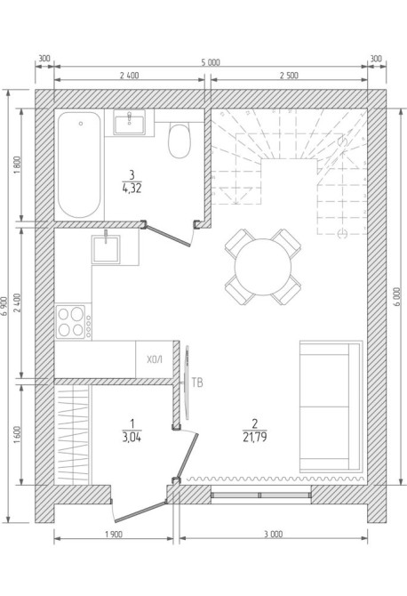 • Загальна площа 55 м2