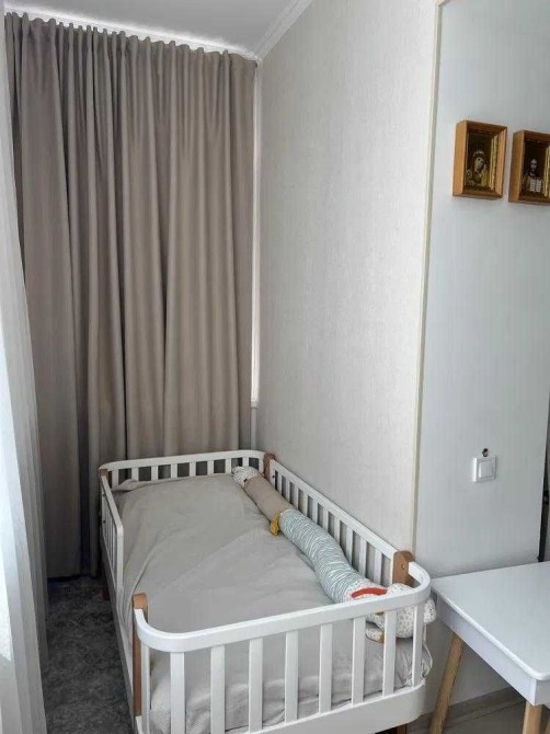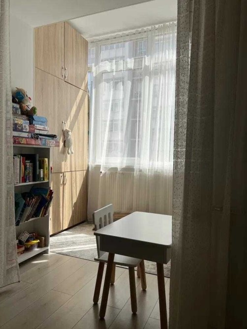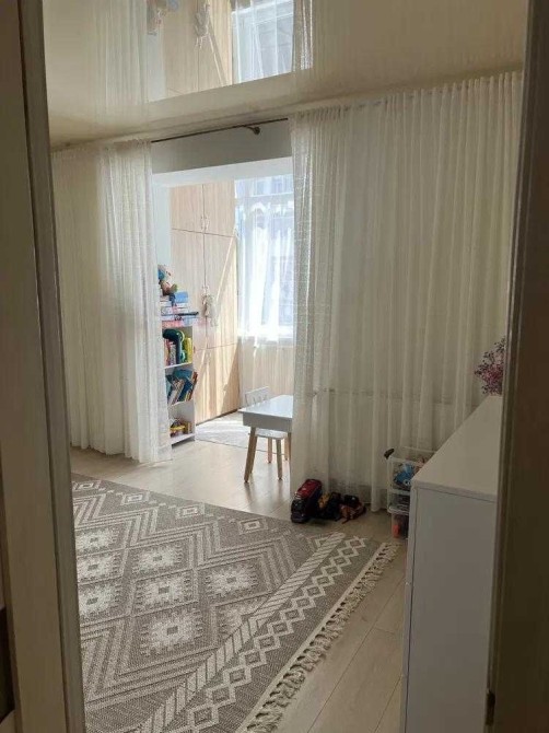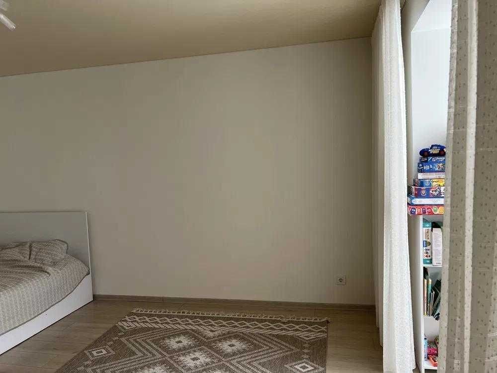 Квартира світла, простора, не кутова, тепла, комфортного планування: велика світла кімната (розділена на дві зони), кухня з панорамним вікном, санвузол суміжний.
