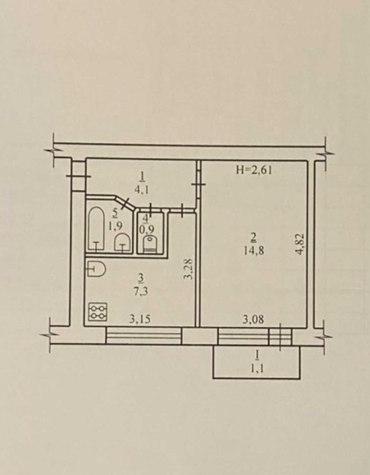 • Площа кухні 7.3 м2