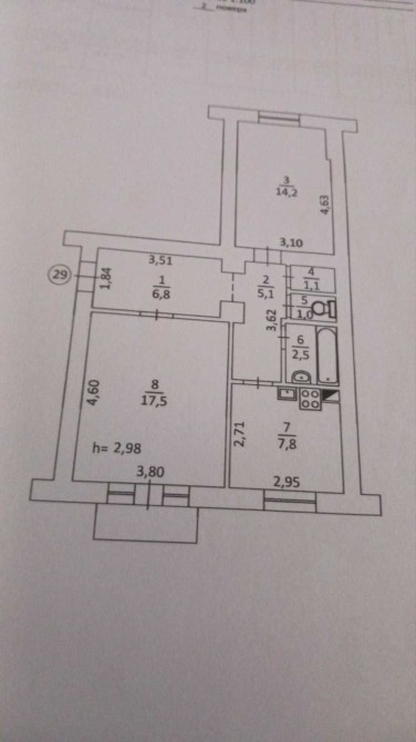 • Площа кухні 7.8 м2