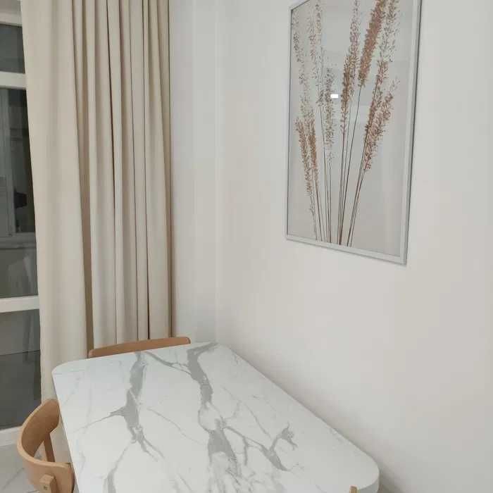 Оренда стильної 1 к кв з кухнею студією в новому будинку ЖК "Файна Таун" в Шевченківському районі, вул. Салютна, 2 Квартира 43 м2 , розташована на четвертому поверсі та складається з передпокою, спальні, великої кухні -студії та санвузла. Вікна квартири виходять в двір. Облаштована всіма необхідними меблями з екологічно чистої деревини та оснащена побутовою технікою: телевізор Samsung Smart 43, кондиціонери в кухні та кімнаті, плита індукційна, вбудований холодильник, духова шафа з функцією мікрохвильової печі, пральна машина з сушаркою. В кухні та ванній кімнаті тепла підлога, високошвидкісний інтернет. ЖК "Файна Таун" це: закрита територія з входом по картці, цілодобова охорона, відеоспостереження, паркінг, підземні контейнери для сміття, зарядні станції для електромобілів та лавки з інтегрованими батареями для підзарядки девайсів, розумне освітлення, яке підлаштовується під час доби та ще багато чого для того, щоб жити з комфортом й ні в чому себе не обмежувати) розповім при перегляді. Зручне транспортне сполучення та розвинута інфраструктура: магазини,спортивні та пішохідні зони ,зона барбекю, ресторани та кафе. Квартира, в якій поєднані комфорт та затишок, шукає своїх порядних орендарів молоду пару або одну людину без дітей та тварин. Перша оренда, квартира вільна.