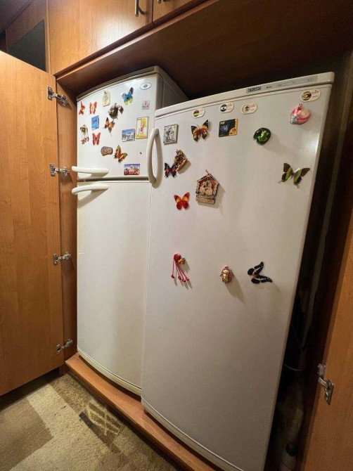 Холодильник і окрема морозильна камера, вбудовані в шафу в коридорі