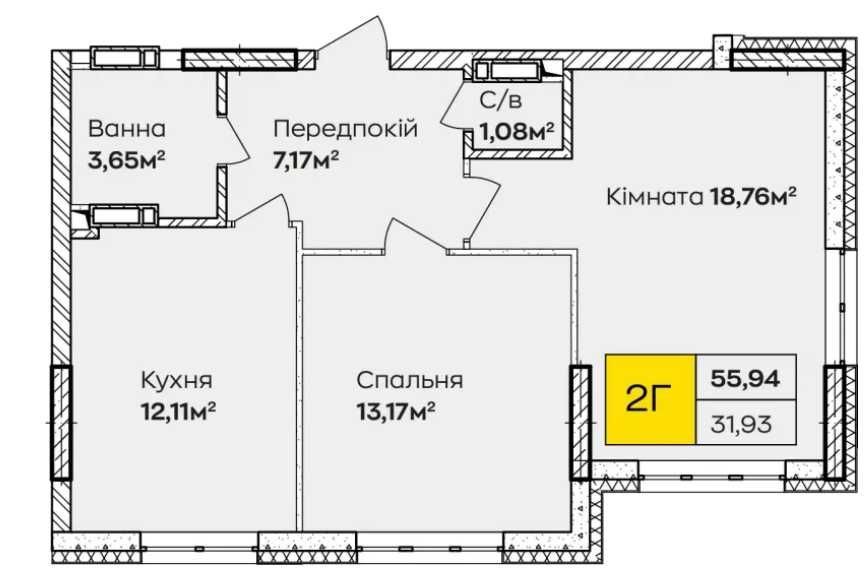 • Загальна площа 55.94 м2