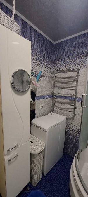 Кухня обладнана необхідною технікою. У компактній ванній кімнаті є пральна машина та ванна.