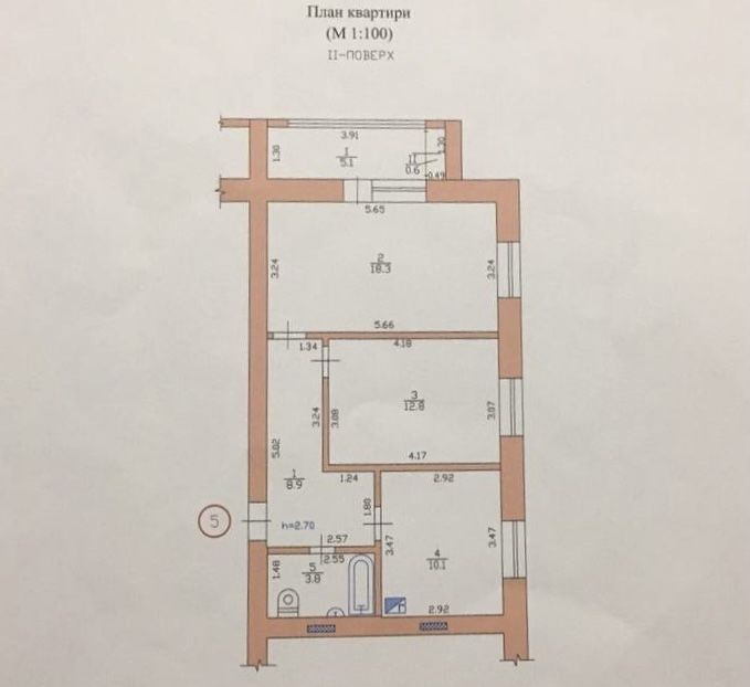 Висота стелі 2.7м.