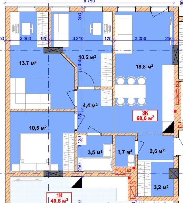 • Загальна площа 68.6 м2