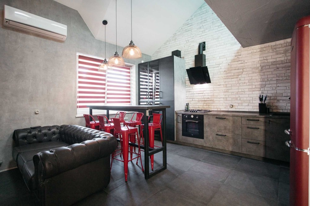 - Встановлено вінтажний холодильник, посудомийна машина, духовка, мікрохвильовка, кондиціонер, телевізор.