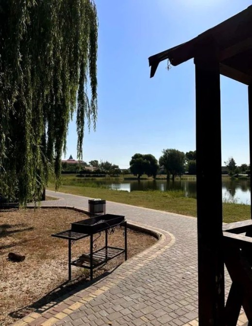 Поруч велике озеро з доглянутою сучасною набережною, дитячими та спортивними майданчиками, піщаним пляжем, альтанками, кафе та місцями для риболовлі.