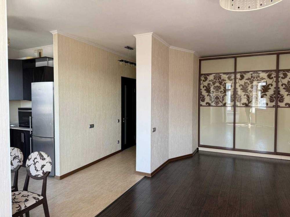 Світла, тепла квартира-студія з панорамною лоджією та сучасним ремонтом.