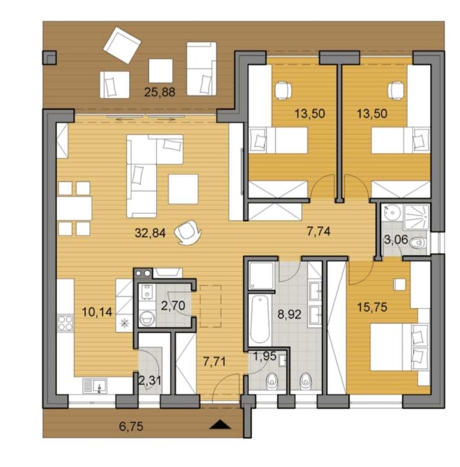 Загальна площа 120 м2 + терраса 26 м2.