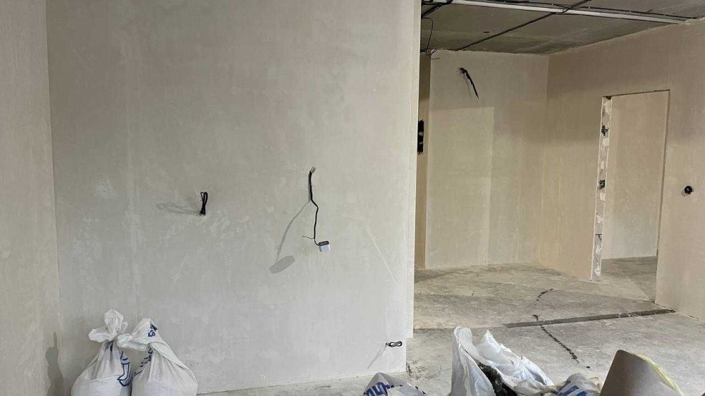 Виконано чорнові роботи: штукатурка стін, розведена електрика