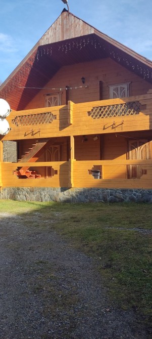 Дерев'яний будинок біля річки та лісу.В будинку 4 - ри номера,в кожному є санвузол, холодильник , телевізор.В будинку є вихід на балкон.Кухня на території,все є для самостійного приготування.