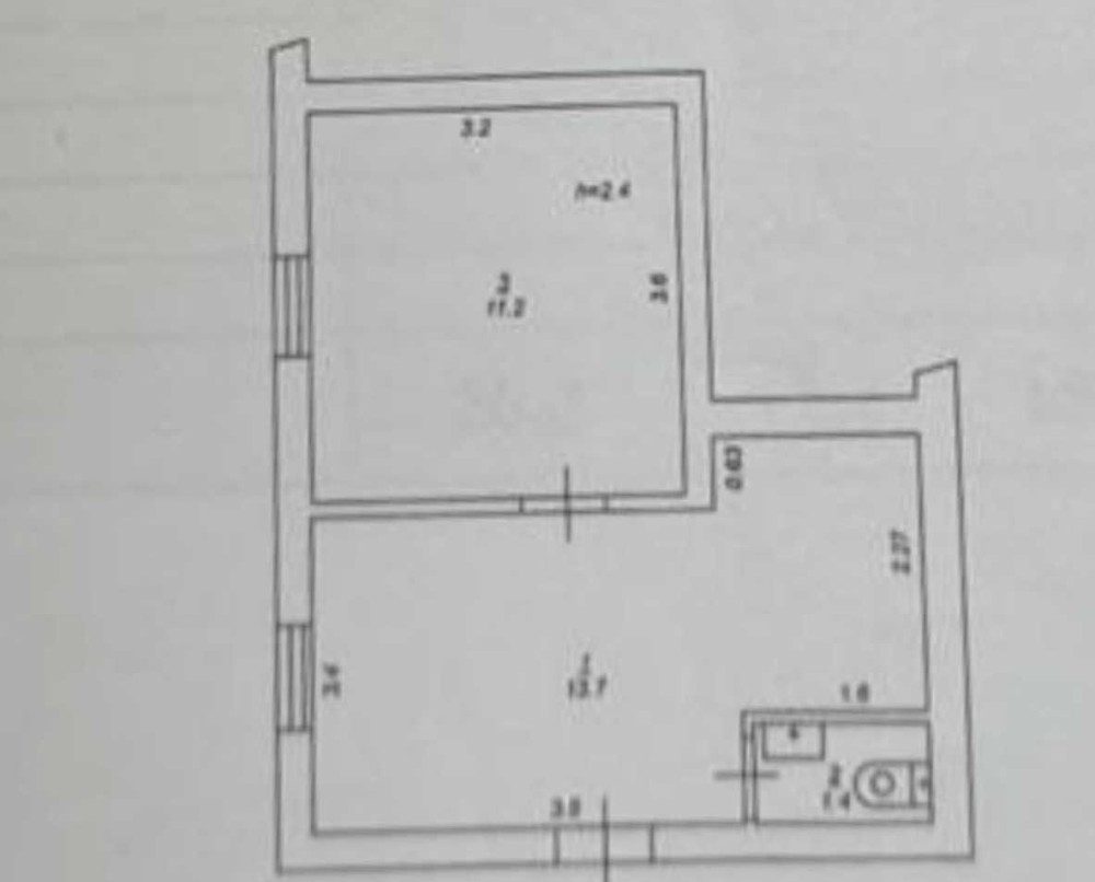 Общая площадь - 26,3 м.