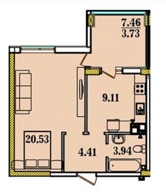 • Загальна площа 42 м2