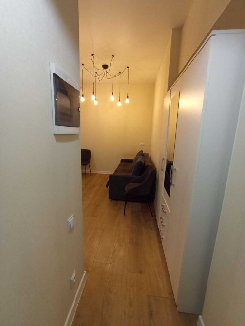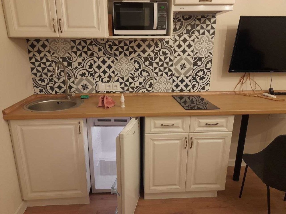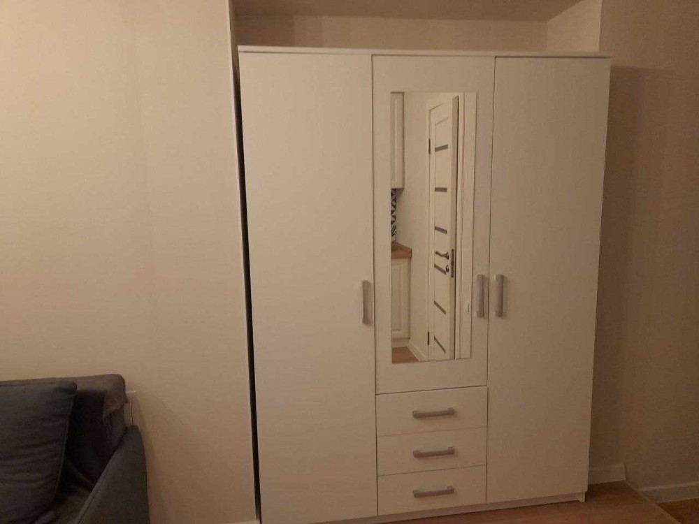 - встроенная кухня, шкаф, диван, рабочий стол, стулья.