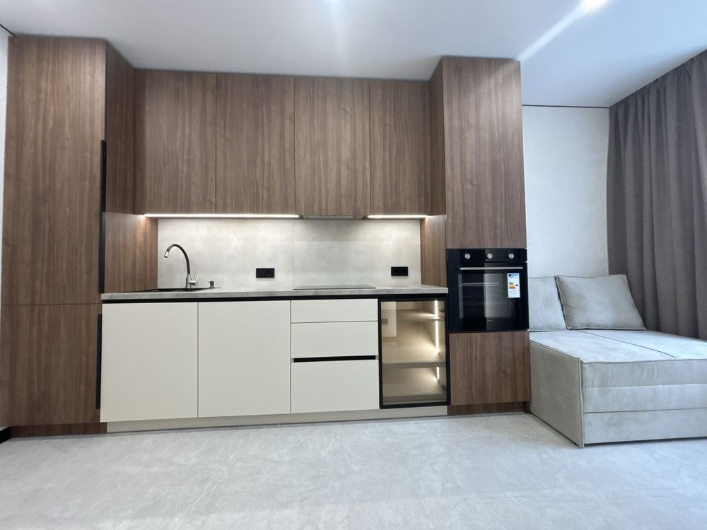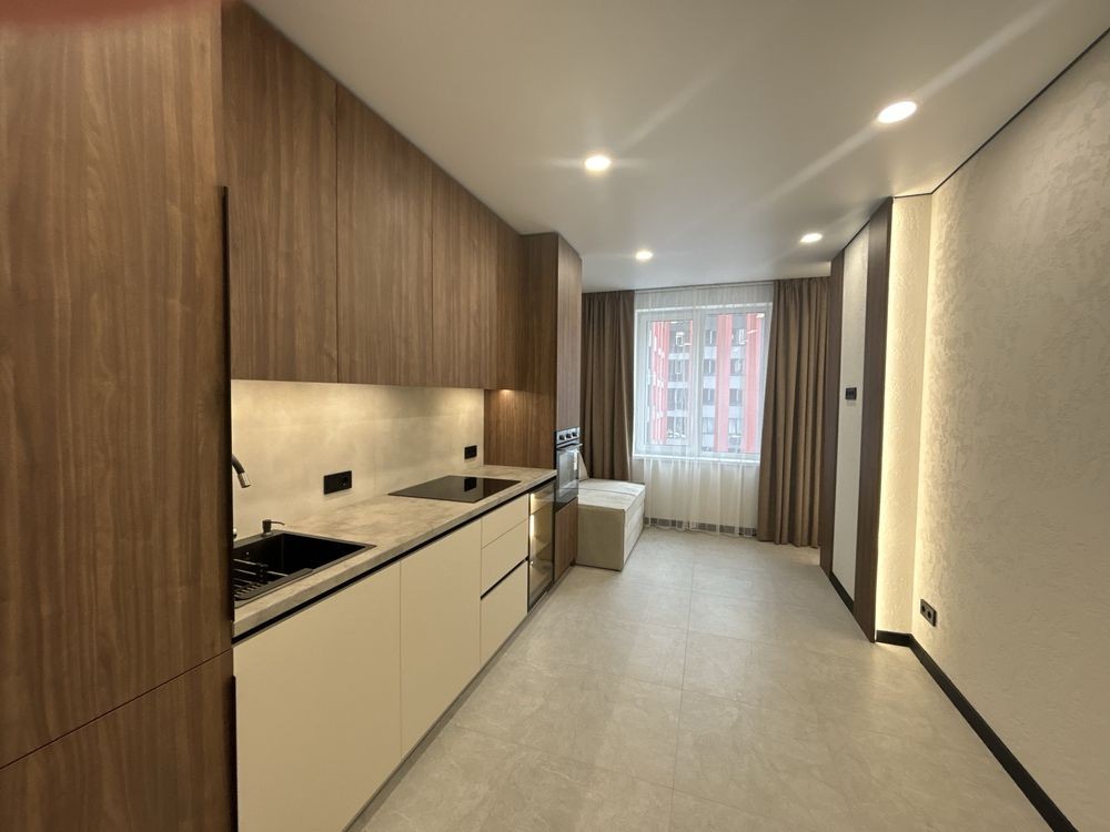 Простора світла кухня, вбудована техніка:духова шафа, плита, витяжка, бойлер. Є майстервимикач.