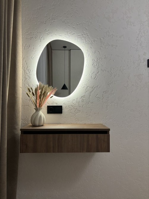 На стінах декоративна якісна штукатурка.