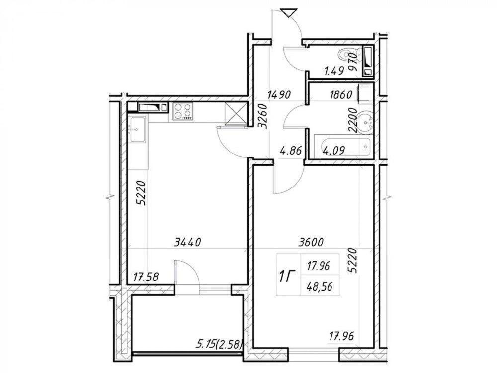 • Загальна площа 48.56 м2